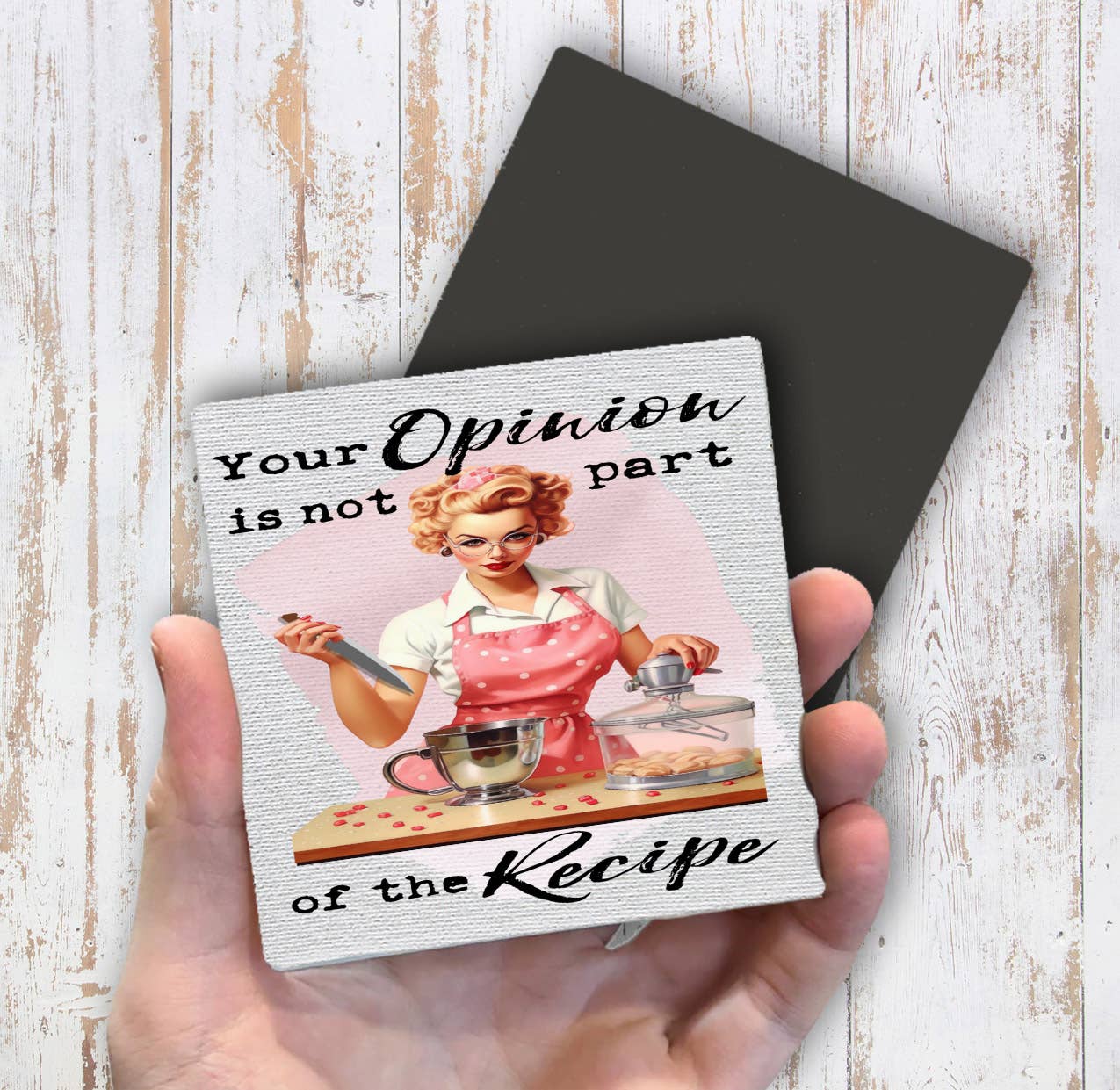 Description: Fridge Magnet 3 3/8" Opinion Anne Taintor, Misc info and dimensions: Magnet 3 3/8 inch Dia, Materials: LAMINATED PAPER & MAGNET, COO: United States, SKU - ATM01349, Boston International