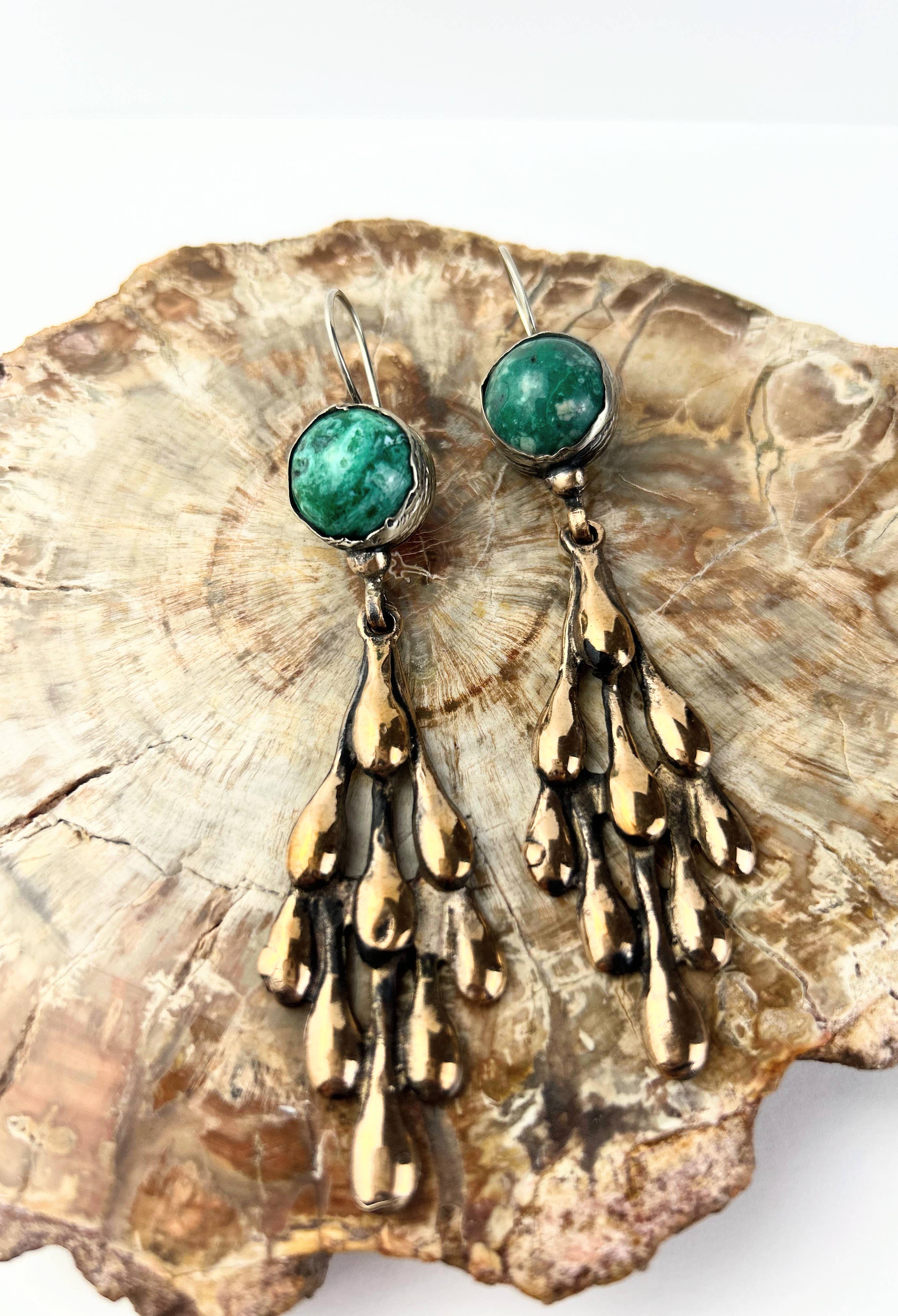 723425, Handmade Squash Turquoise Hoop Earrings