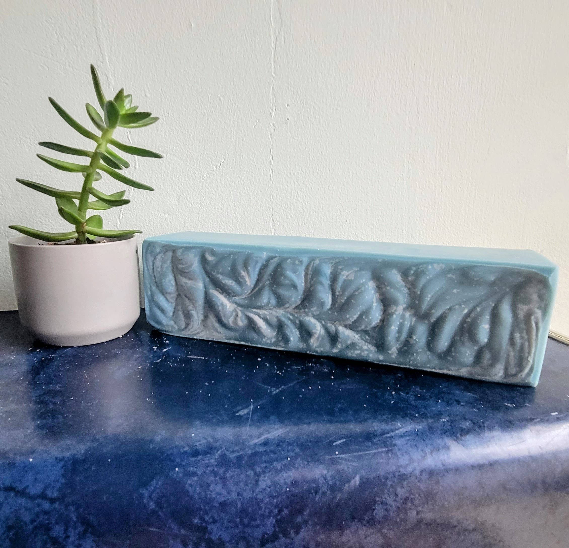 This soap is lightly scented. It has a classic cologne fragrance, it's is comprised of sage and mint without being too earthy. It's sexy and clean with just a hint of exotic. Ingredients: Saponified olive oil, sustainable palm oil, coconut oil, goat's milk, distilled water, castor oil, phthalate-free fragrance oil, citric acid, and mica. Net WT 5.0 OZ