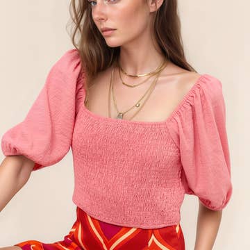 Wholesale 31410T - Satin Jacquard Dot Print Shirred Blouse Top