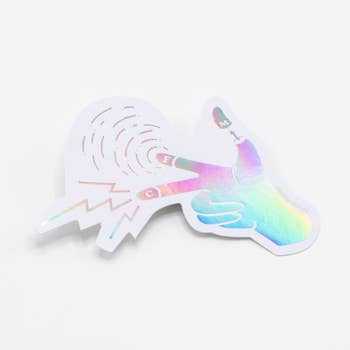 Haring’s signature symbol in rainbow holographic. • 1 die-cut sticker (2.25 x 2.25 in.), digitally printed on rainbow holographic. Made in the USA with <3. © Keith Haring Foundation. Licensed by Artestar, New York