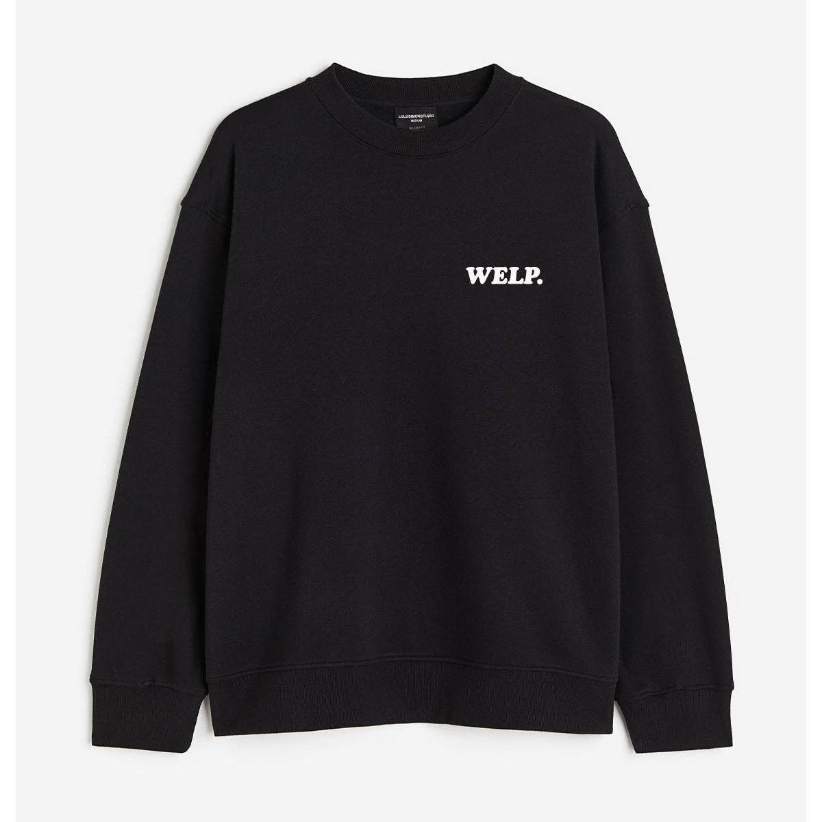 Black Sweatshirt White writing 60/40 combed ring-spun cotton/polyester 3-End fleece Ribbed collar, hem and cuff Socially Conscious Manufacturing: This product was made in a facility that is WRAP certified