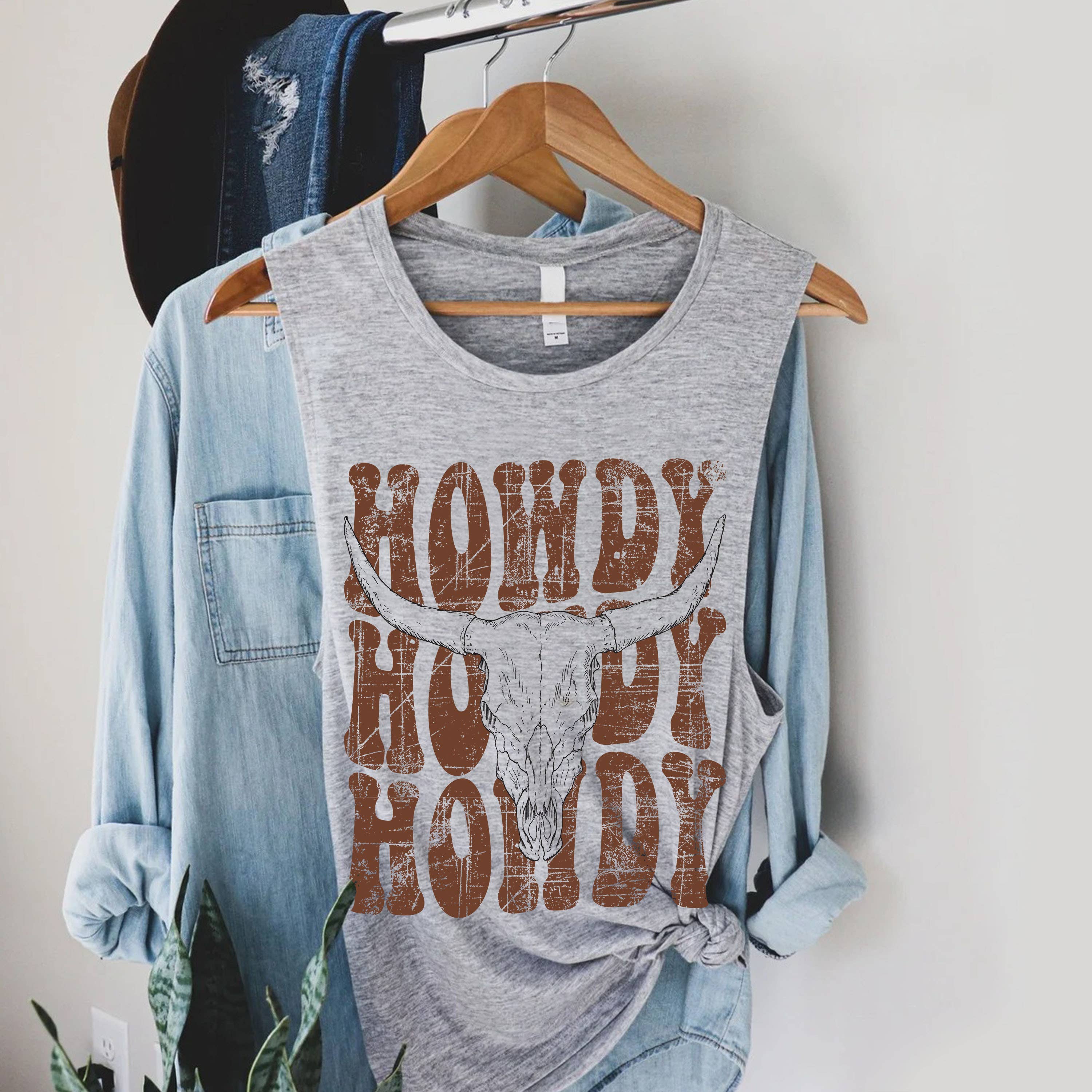 Howdy Longhorn Skull Graphic Women's Jersey Tank Top