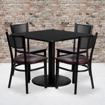 Elevate your dining experience with this chic dining set, featuring a stylish table and four comfortable grey chairs. Perfect for family dinners or entertaining guests, this set blends modern aesthetics with practicality. Product Details: Table Dimensions: 62.9" L x 35.4" W x 28" H Chair Dimensions: 17.3" W x 22.2" D x 18.1" H Seating Capacity: Comfortably seats 4 people Color: Sophisticated grey chairs Material: Premium marble-like tabletop with durable flat iron legs Features: Contemporary flat iron legs add a sleek touch to your dining space. Adjustable feet provide stability on any surface. High-quality edge finishes for a polished look.