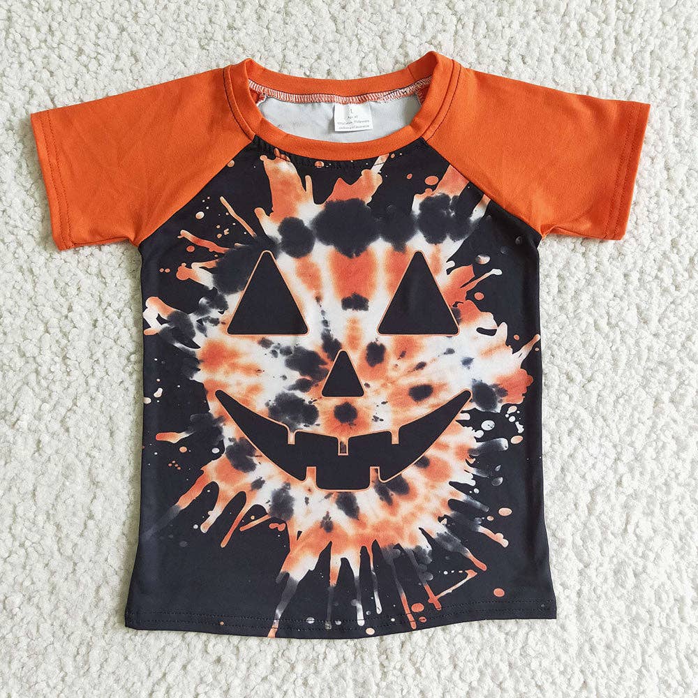 Tie dye pumpkin raglan kids boy Halloween shirt