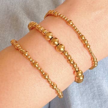 Measurements: 15 inches with 2 inch extender, 3mm thick beads  Closure: Lobster clasp Materials: 18k gold layered Package is beautifully wrapped and gift ready!