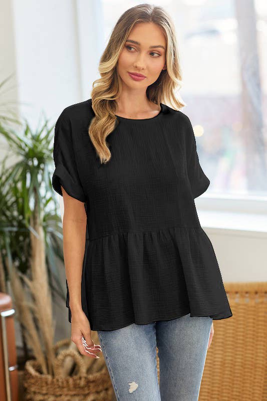 Wholesale Solid Color Scalloped Ruffle Sleeve Top