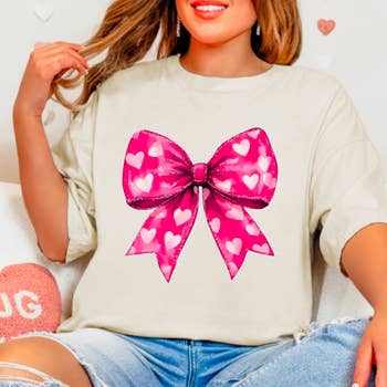 Wholesale Summer Sweet Tea Gingham Checkered Pink Bow Graphic Tee