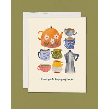 Inside: blank. Size: 4.25" x 5.5". Paper: bright white, recycled, heavyweight. Envelope: recycled, matching. Ink: archival. Comes in a clear sleeve for protection.