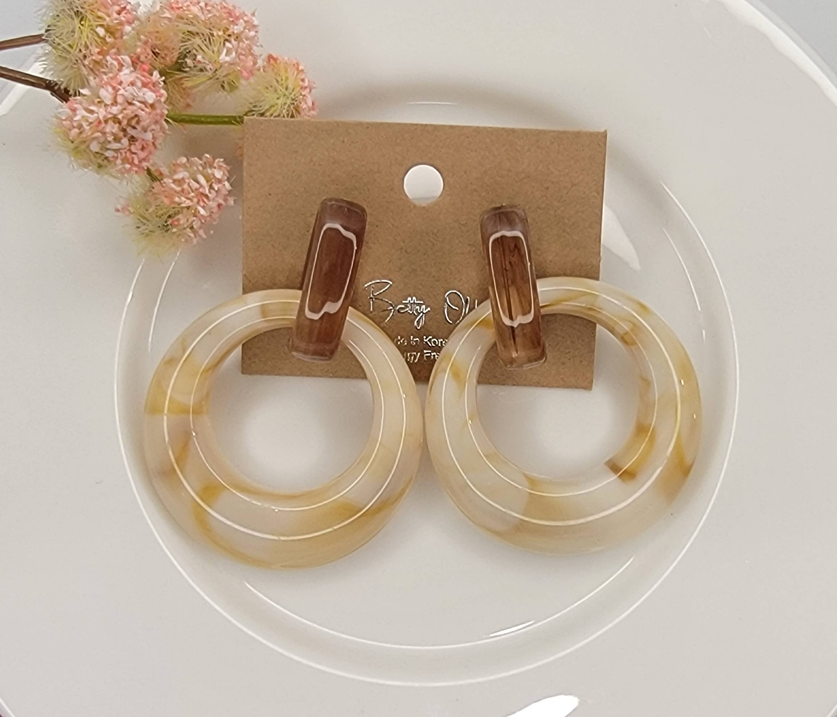 Dangle Earrings. Material: titanium fish hook, brass, lead & nickel free. Length: 3". Bottom ring diameter: 1 3/8".