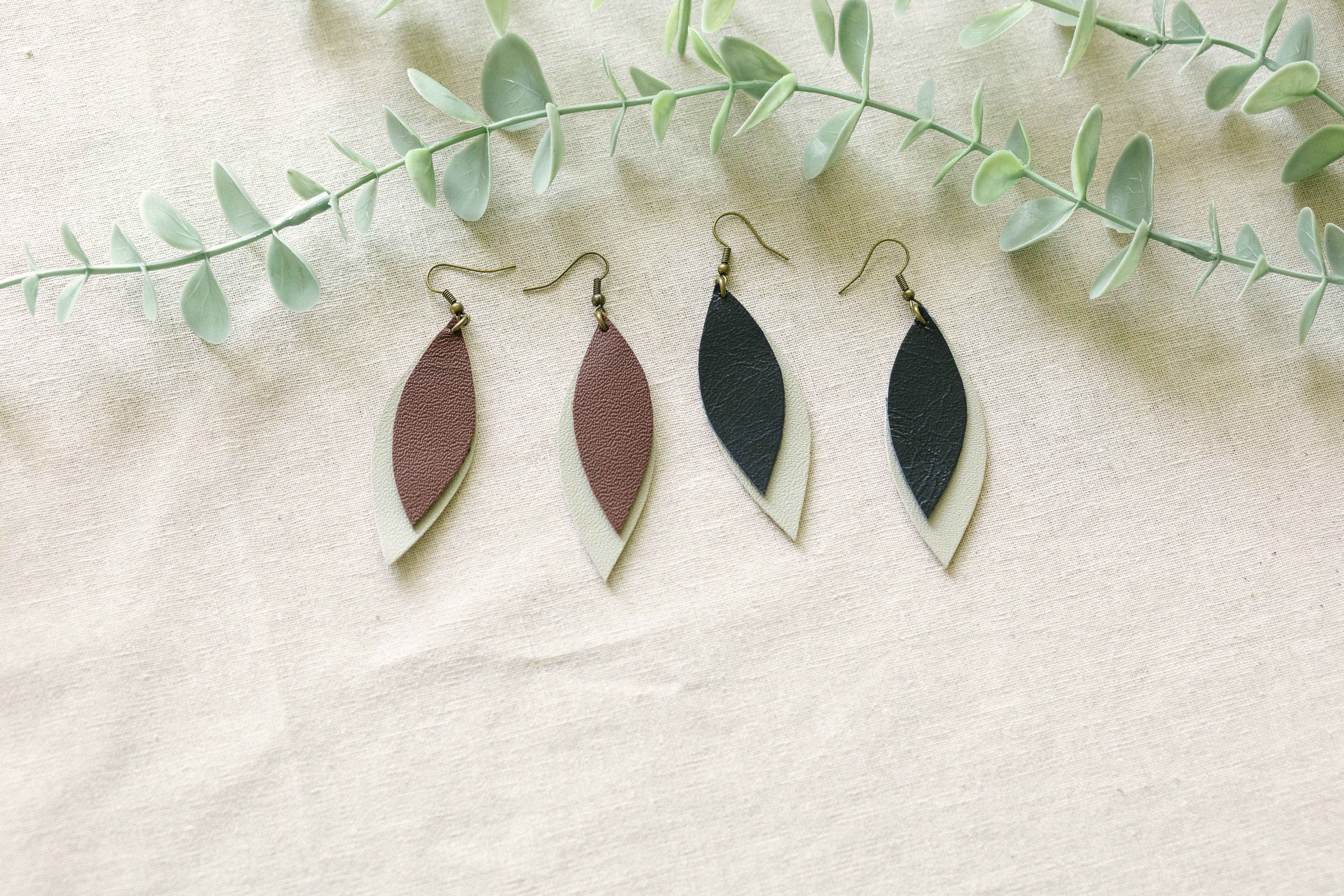Our Addie Dangles are a great everyday earring. They are a classic staple with your choice of natural cork with gold glimmers or our white cork with gold glimmers. These dangles are made of cork backed leather. They are not cork on both sides. The backside of the earring is a light tan. At Empowered Goods all our products are hand crafted by women currently living in underprivileged areas. All of our artisans are payed a healthy living wage to help them put food on their table, send their kids to school and empower them to better their lives.Â