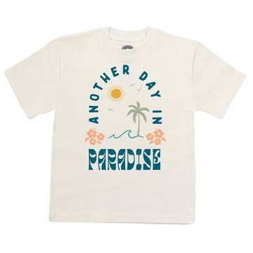 Kids size: 1 -XS (4-5), 1-S(6-8), 1-M(10-12), 1-L (13-14), 1-XL (14-16). Short sleeve garment-dyed t-shirt in washed blue. Fun surf-inspired graphic printed in multi-color on the front and back. Tonal stitching. Rib knit crewneck collar. - 100% cotton, Mid-weight - Garment-dyed for vintage washed look and softness. - Relaxed fit - For Girls, Boys, Unisex, Tweens, Youth - Imported. *Slight color variations may occur, given the nature of the dyeing process.
