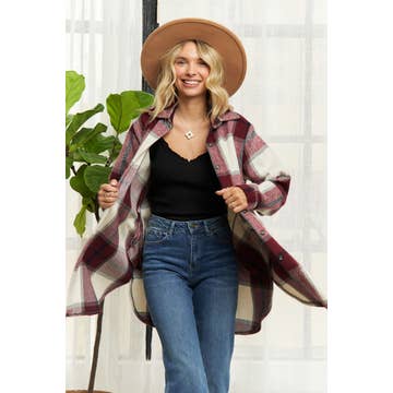 plaid print long sleeve button up shacket style: casual type: shacket material: polyester neckline: turn-down collar sleeve style: long sleeve length: regular pattern type: plaid decoration: button fit type: oversized occasion: daily