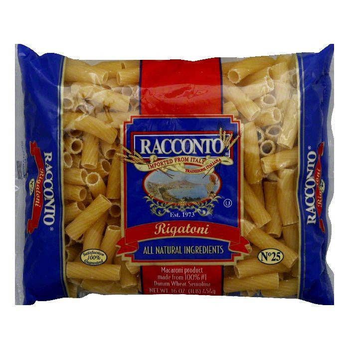 Macaroni product made form 100% No. 1 durum wheat semolina. All natural ingredients. Est. 1973. Satisfaction 100% guaranteed. For centuries, the Naples region of Italy has enjoyed perfect soil and climate conditions; ideal for growing quite possibly the world's finest hard amber durum wheat. This premium wheat blended with natural spring water are the only ingredients of Racconto's classic recipe - no additives, no artificial coloring and no enrichments. The result is a pasta with exceptional texture and consistency; a pasta that will always cook al dente. From the Italian countryside to your table, Racconto - an authentic Italian tradition. Imported from Italy. Product of Italy.