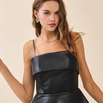 Our Willow Pu Top features a strapless and a center back zipper closure Woven.
