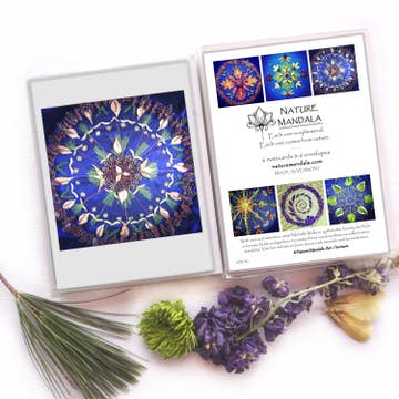 NATURE MANDALA BOXED GREETING CARDS -8 different collections to choose from. -Each set contains 6 different mandala note cards. -Standard A6 folded note cards and envelopes (4.75”x 6.5”). Blank inside. OTHER INFORMATION - Packaged in a clear protective box. - This product is printed on FSC certified paper from responsibly managed forests. - UPC Stickers available by request :: :: :: :: :: :: :: :: :: :: :: :: With care and attention, artist Michelle Wallace arranges the beautiful colors, shapes and textures she finds in nature to create unique art designs called nature mandalas. MADE IN VERMONT A great gift for Easter, Mother's Day or any occasion.