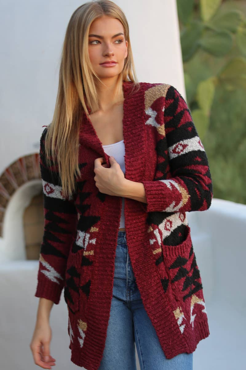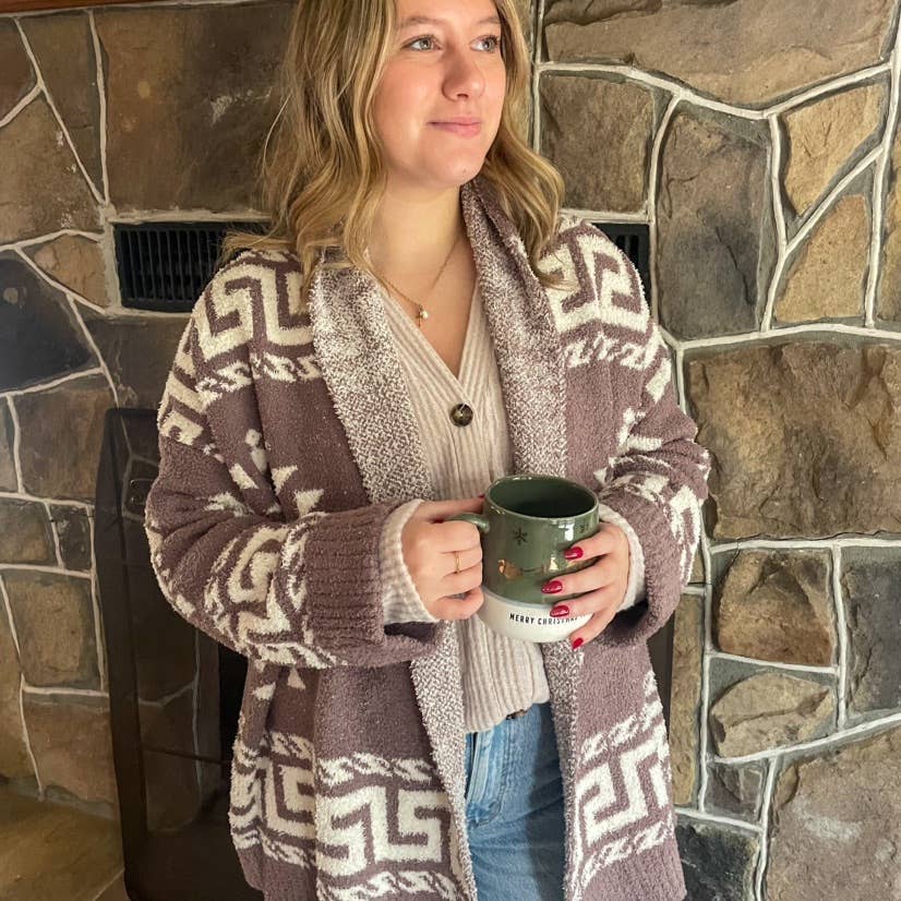 PLUS SIZE AZTEC PRINT SUPER SOFT COZY SWEATER KNIT CARDIGAN