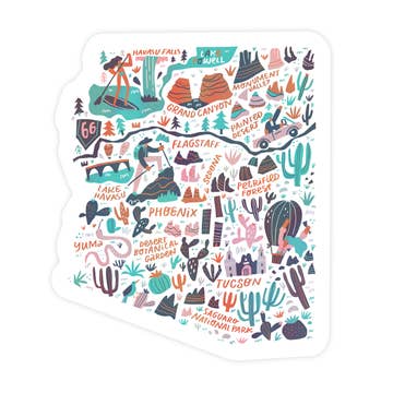 "Tucson" A decal for your water bottle, laptop, car, cooler, notebook, or anything else you want to personalize! Vinyl stickers are sturdy and resistant to wear so you can enjoy these on your most-used items. Details 2" x 2.78" Vinyl Weather and Water-Resistant Dishwasher Safe Designed in Tucson, Arizona