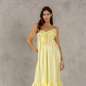 YORYU CHIFFON RUFFLE TIERED MAXI DRESS SELF:100% POLYESTER, LINING:100% POLYESTER | IMPORTED MODEL IS 5'8" AND IS WEARING A SMALL