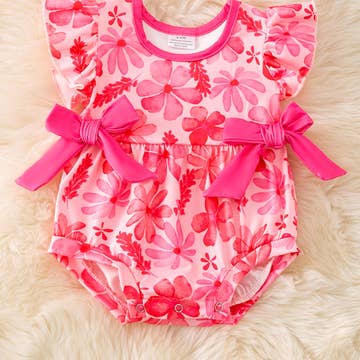 SKU: HIBISCUSONESIE-0-6M Color: Pink and White Fabric: 90% Viscose from bamboo, 10% spandex Pattern: Floral Season: Spring/Summer Sleeve Length: Short Sleeve Product Language: English Weight: 68.04 g (2.4 oz) UPC: 810005980326 Packaging: Recyclable and Recycled Production: Ethically sourced