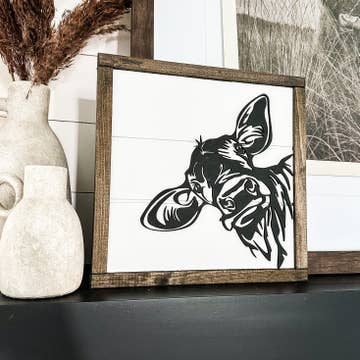 WHOLESALE WOOD FRAMED BROWN NOSE COW SIGN