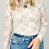 White Sheer Lace Mesh Mock Neck Slim Fit Long Sleeve Top