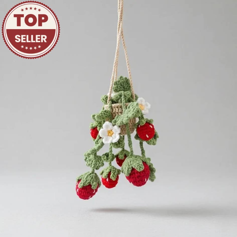 Wholesale Crochet Strawberry & Daisy Flower Car Mirror Hanging Plant