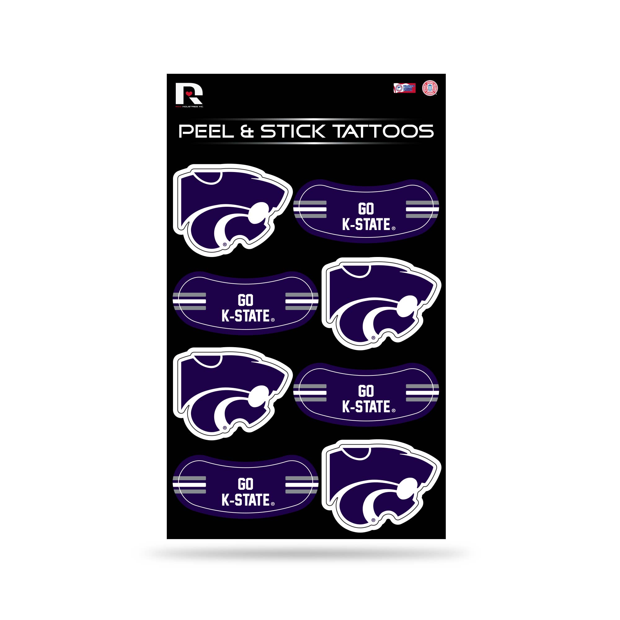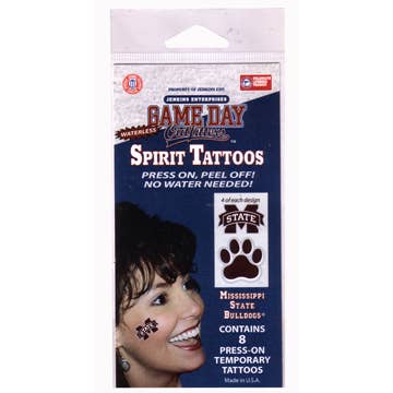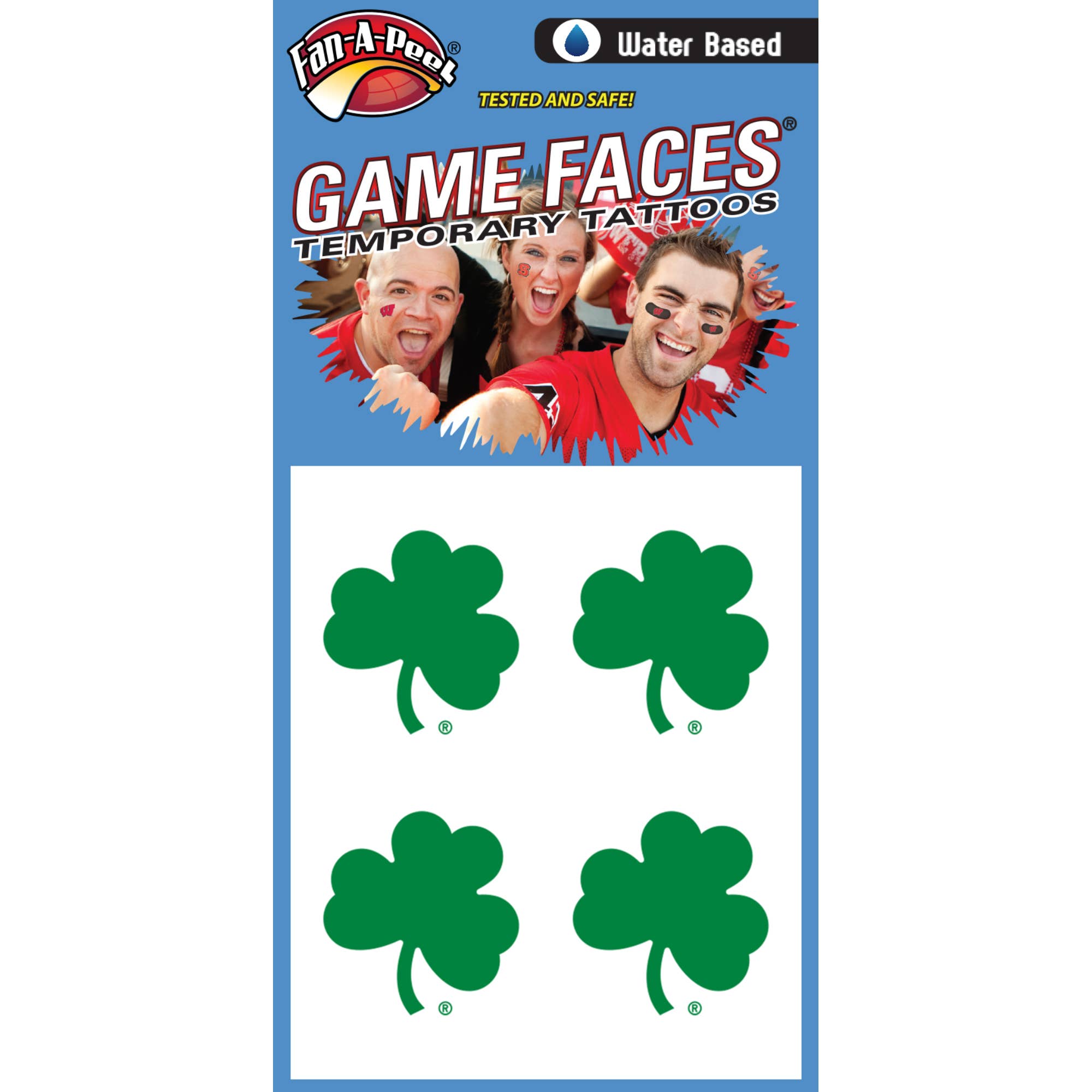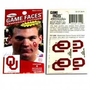 Get your Game Faces on! Show your game day style with Game Faces® Temporary Tattoos. Each package contains 4 Waterless Temporary Tattoos. Tattoos are approximately 1.25" x 1.25" and are printed on clear, 3M® Brand, Hypoallergenic, Medical Tape.