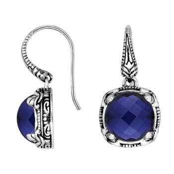 * Dark Blue Stone Inlay * 3/4" Long (without hooks) and 5/8" Wide * Weight is Approximately 4.6 Grams * Hooks for Pierced Ears * Marked .925 In This Traditional Irish Claddagh, the Heart Denotes Love, the Hands Show Friendship and Togetherness, and the Crown Signifies Loyalty. A dark blue stone is inlaid into the heart setting.