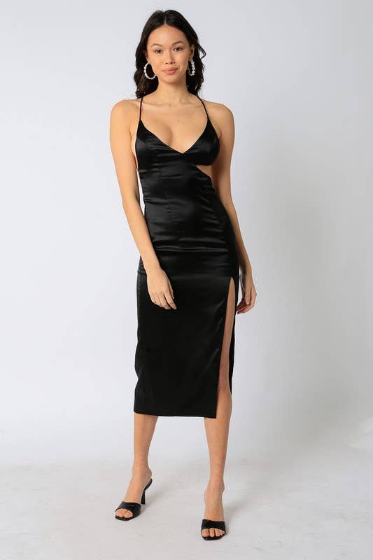 DISTRESSED WASHED EFFECT KNIT ASYMMETRICAL NECK SPLIT LEG MIDI DRESS 95% POLYESTER / 5% SPANDEX | IMPORTED MODEL IS 5'8" AND IS WEARING A SMALL