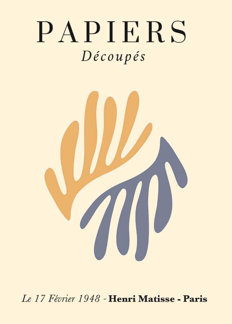 Graphic illustration of a blue leaf with a yellow moon against a beige background in the background. Inspired by French artist Henri Matisse, whose art is characterized by the use of vibrant colors and shapes. We also sell matching frames in different colors. Different size or paper? Do you like the print, but do you want it in a different size or paper type? You can. We offer 30x40, 40x50 and 50x70 posters. In addition to MC Matte paper, we can also print on premium vintage paper. We can also supply accessories to send in the posters or display them. Please contact us for the possibilities via the button below, or via info@esque.nl.
