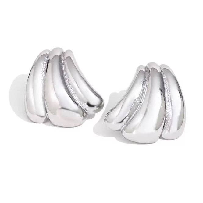 These chunky statement studs are so unique + fun! They feature the perfect blend of boldness, simplicity, and fun! they are very lightweight as well. Crafted from stainless steel with an 18k gold finish, they are hypoallergenic, waterproof, and tarnish-resistant. Size: 7mm x 26mm