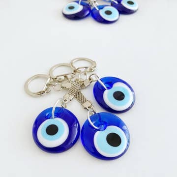 Introduce a unique blend of protection and luck to your inventory with our Evil Eye Ceramic Keychain with Elephant from Turkey. Handcrafted by skilled artisans, this keychain features the iconic Evil Eye design, known for warding off negative energy, paired with an elephant symbolizing strength, wisdom, and good fortune. Perfect as a thoughtful gift or a charming personal accessory, this keychain adds cultural significance and artistry to everyday life. Stock up now and offer your customers a beautiful fusion of tradition and practicality. Size: 4 inches