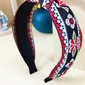 Wholesale Boho Top Knot Embroidered Floral Headband
