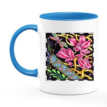 Bring a touch of playful sophistication to your table with this Mahjong–inspired ceramic mug. Scattered iconic tiles of dragons, jokers, and flowers make this perfect for coffee, tea and hot chocolate. Our 15 oz. premium ceramic mug also features a large comfortable handle for easy gripping. It'll quickly become a favorite! Dishwasher and microwave safe Printed in the USA