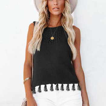 SLEEVELESS ROUND NECK CROCHET SPRING SWEATER FABRIC: CROCHET 60% COTTON 40% ACRTLIC - new arrivals, new 2025, active basic, active usa, tank top, summer, spring, sleeveless top, adjustable strap, must have, essential, crochet top