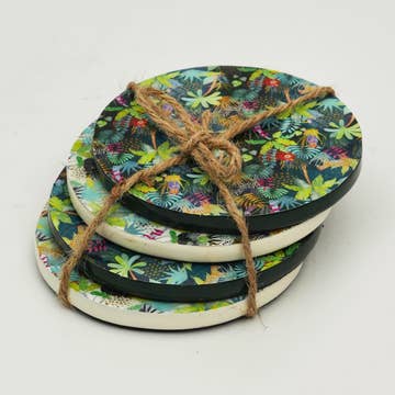 Set of 4 four-inch square thick cardstock coasters, in a few different nature-themed designs. Great for friends, teacher gifts, neighbors - anyone interested in protecting furniture or in need of a fun addition to the beverage bar.
