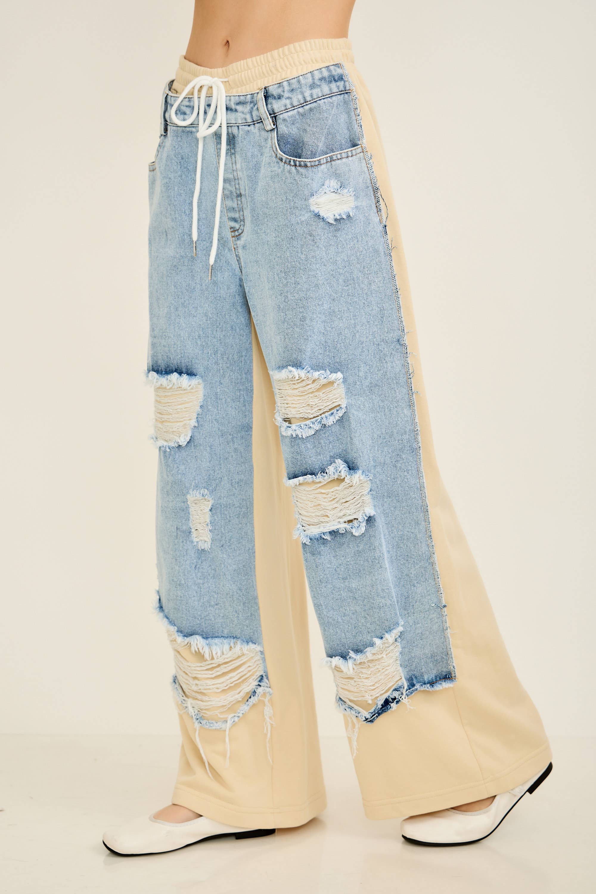 Patch detail denim pants Body Size: Contemporary Pattern: Ripped/Slashed Length: Full