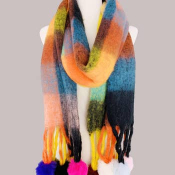 Material: Mohair & Viscose Blend Weight: 100g Dimensions: Length: 240cm Width: 10cm Feature: Contrast Stripe Pattern Plain Weave Construction Lightweight Loop Design Fringe Detail Finishing Care: Hand wash cold Lay flat to dry Do not tumble dry