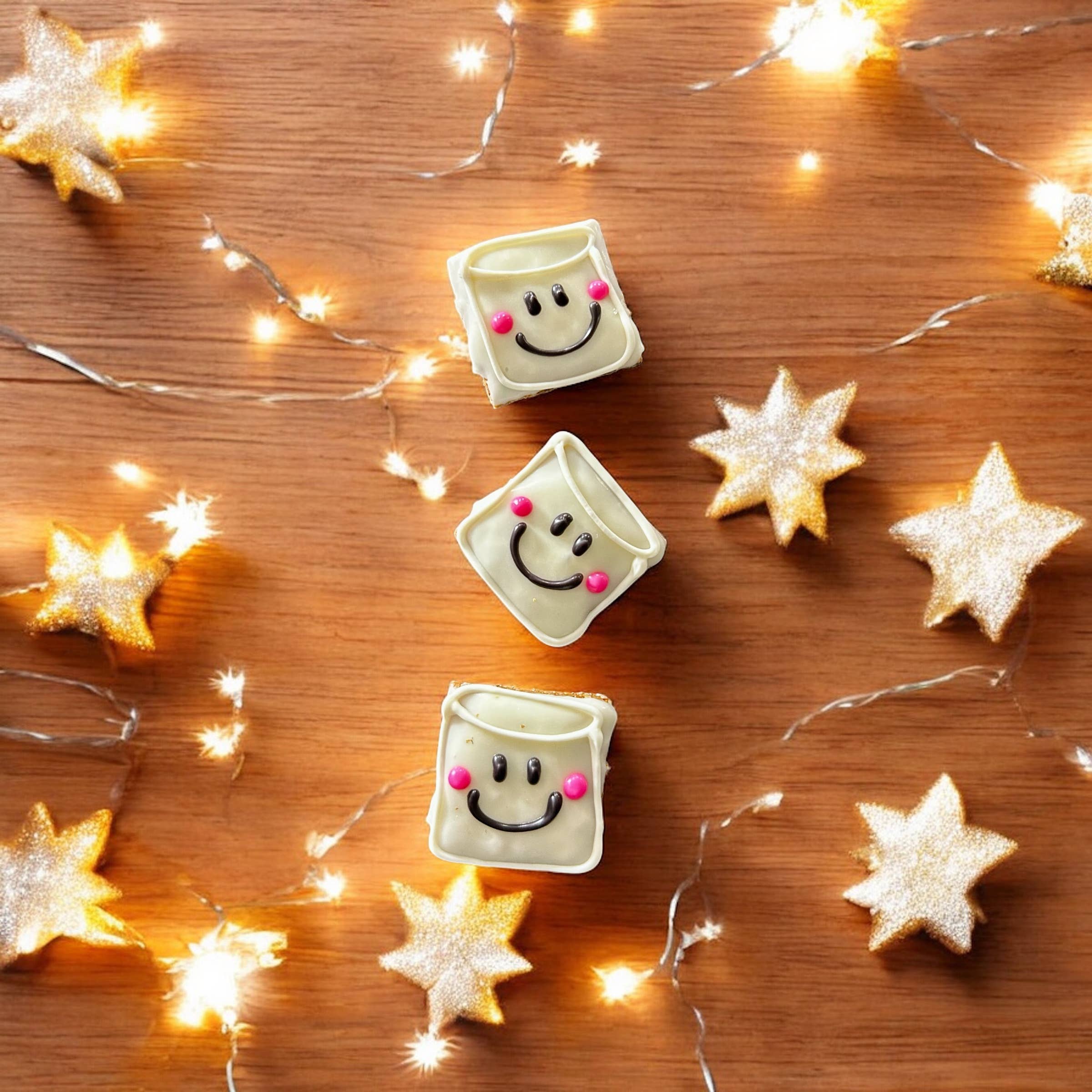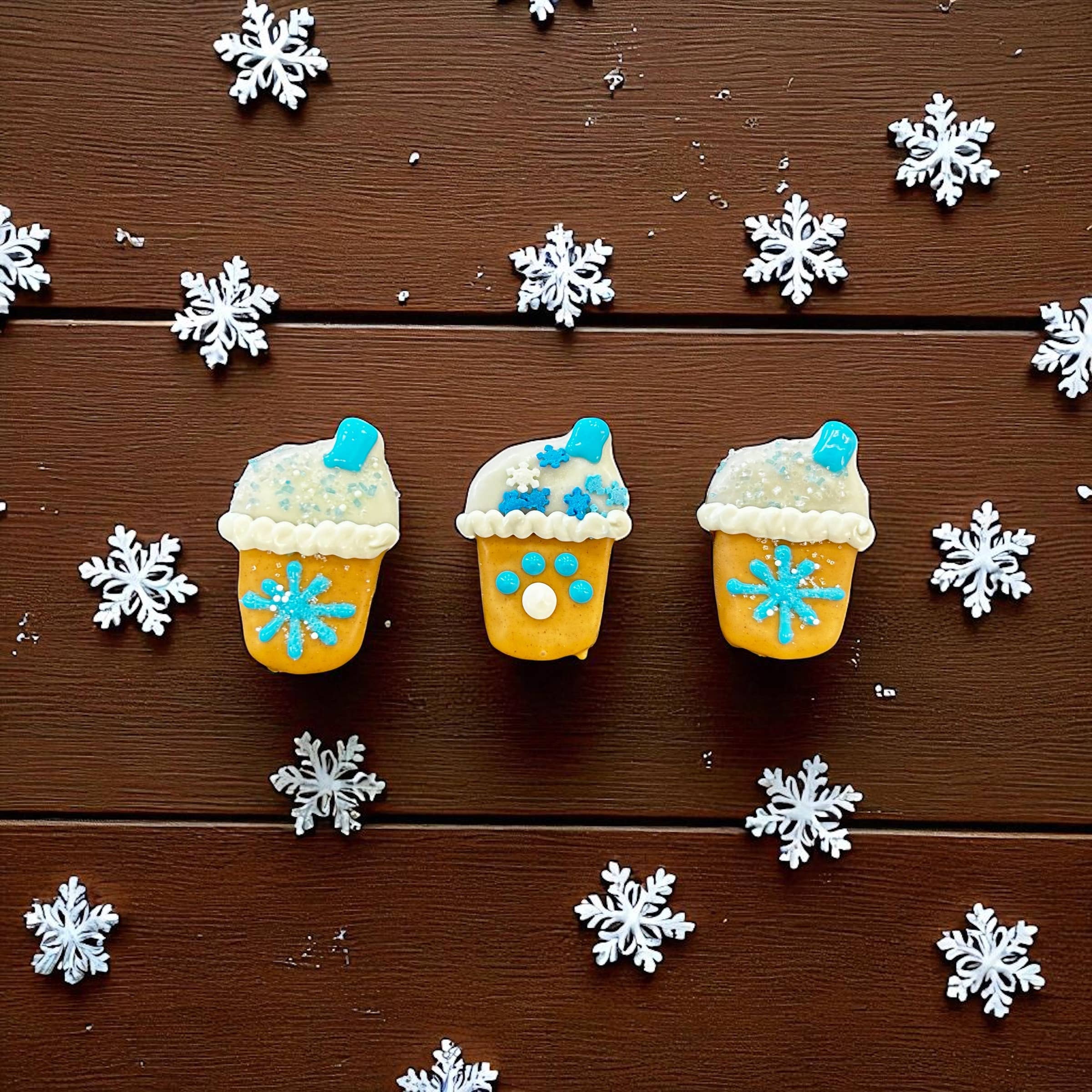 These adorable winter mini bones are a YumYum4DOGS BEST SELLER! Stand out this pawliday season with some YumYum4DOGS mix off winters blues, white & shimmering snowy colors! Handcrafted in yumyum4dogs classic peanut butter recipe, these yummies are baked with love in small batches from only quality natural ingredients that pup & owner will love! TREATS are approximately 2x1 inches. Treats vary. Store treats at no greater than 72 degrees out of direct light to avoid meltage. 6-12 month shelf life if stored properly (out of direct light, in cool, dry area) Ingredients: Peanut Butter, Whole Wheat Flour, Canola Oil, Cinnamon, Oats, Eggs and Honey. Crude Analysis: Crude Protein (min.)..13.0% Crude Fat (min.).........10.0% Crude Fiber (max.)......2.2% Moisture (max)……….…3.5%