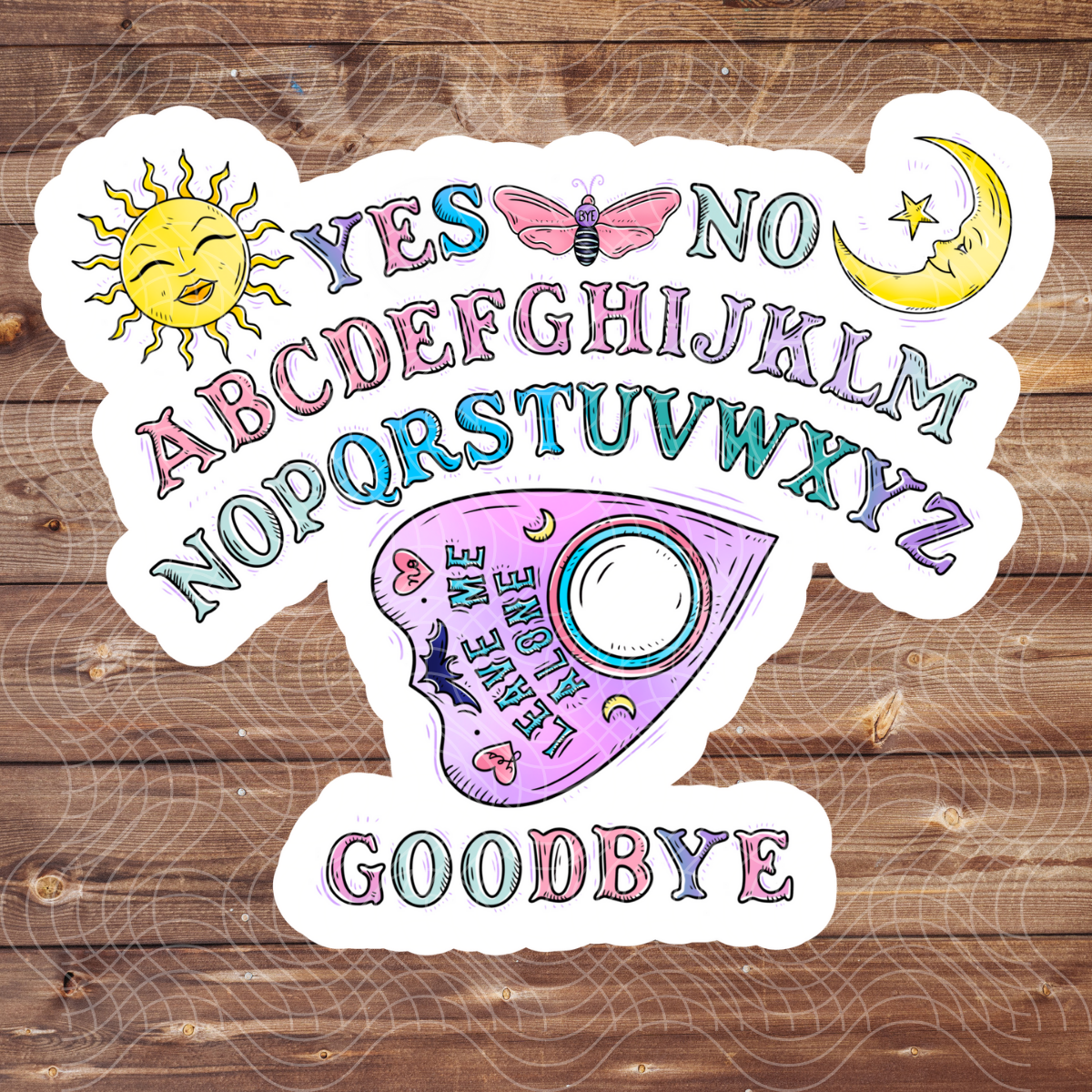 Ope, it's a Midwestern spirit board. No yeah, this sticker measures 2"x3.5" Weather proof, uv resistant, dishwasher safe, glossy vinyl. Themes: stickers, glossy stickers, holographic stickers, laptop stickers, weird, quirky, horror, spooky, witchy, witchy, ouija