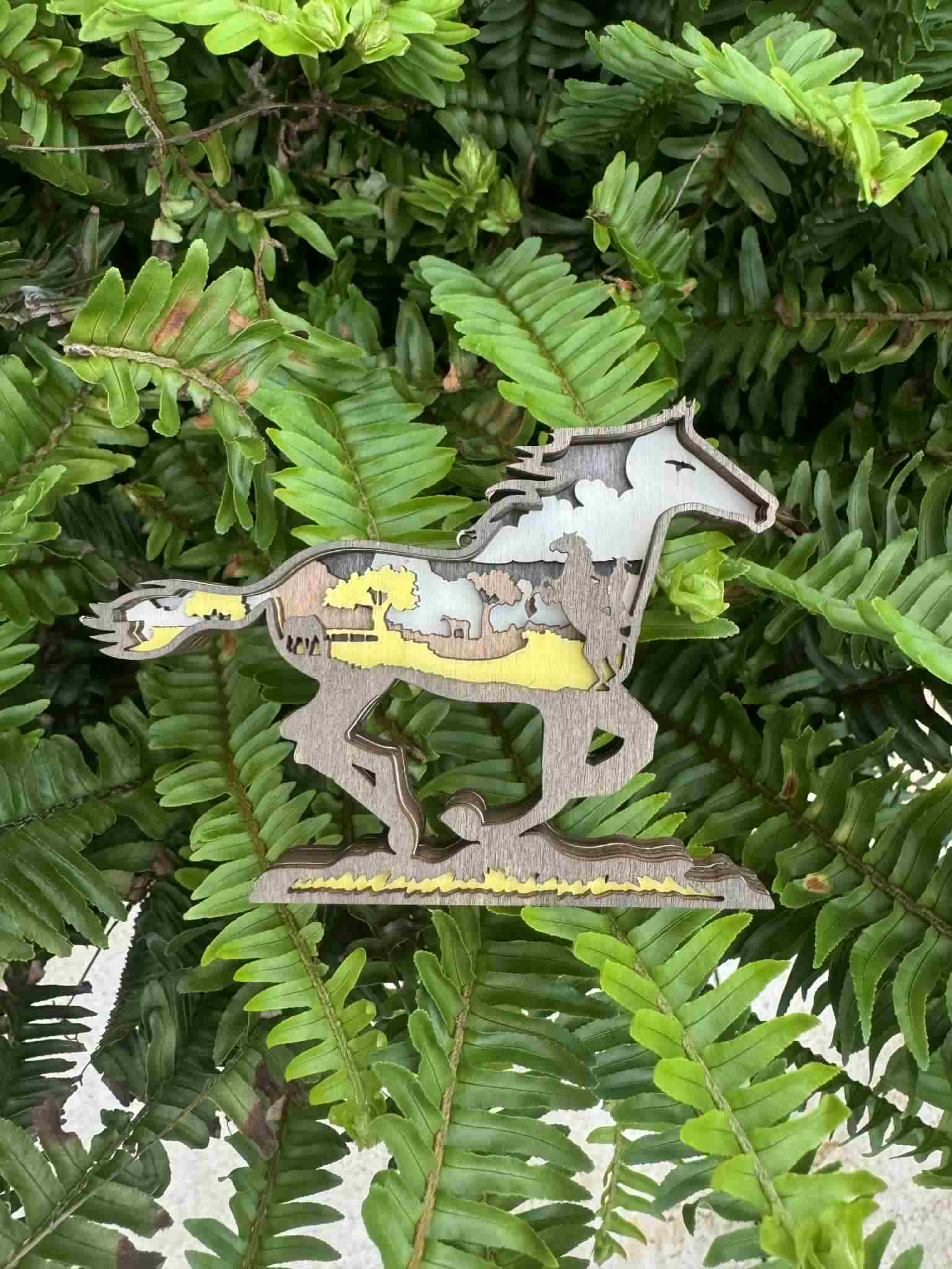 This unique framed art is hand made in Idaho. It measures 9 inches tall by 10 inches wide. The custom frame shape gives the piece a vintage look. The artwork is printed onto canvas using beautiful Canon pigment inks. The canvas is mounted onto a wood backer. The top frame is laser cut birch wood stained in a neutral Early American tone. The entire piece is lightweight and easy to hang with an adhesive strip. (not included) You can also lean this artwork against a wall or other decor item to display it on a shelf or tabletop. It could also be displayed on an easel.