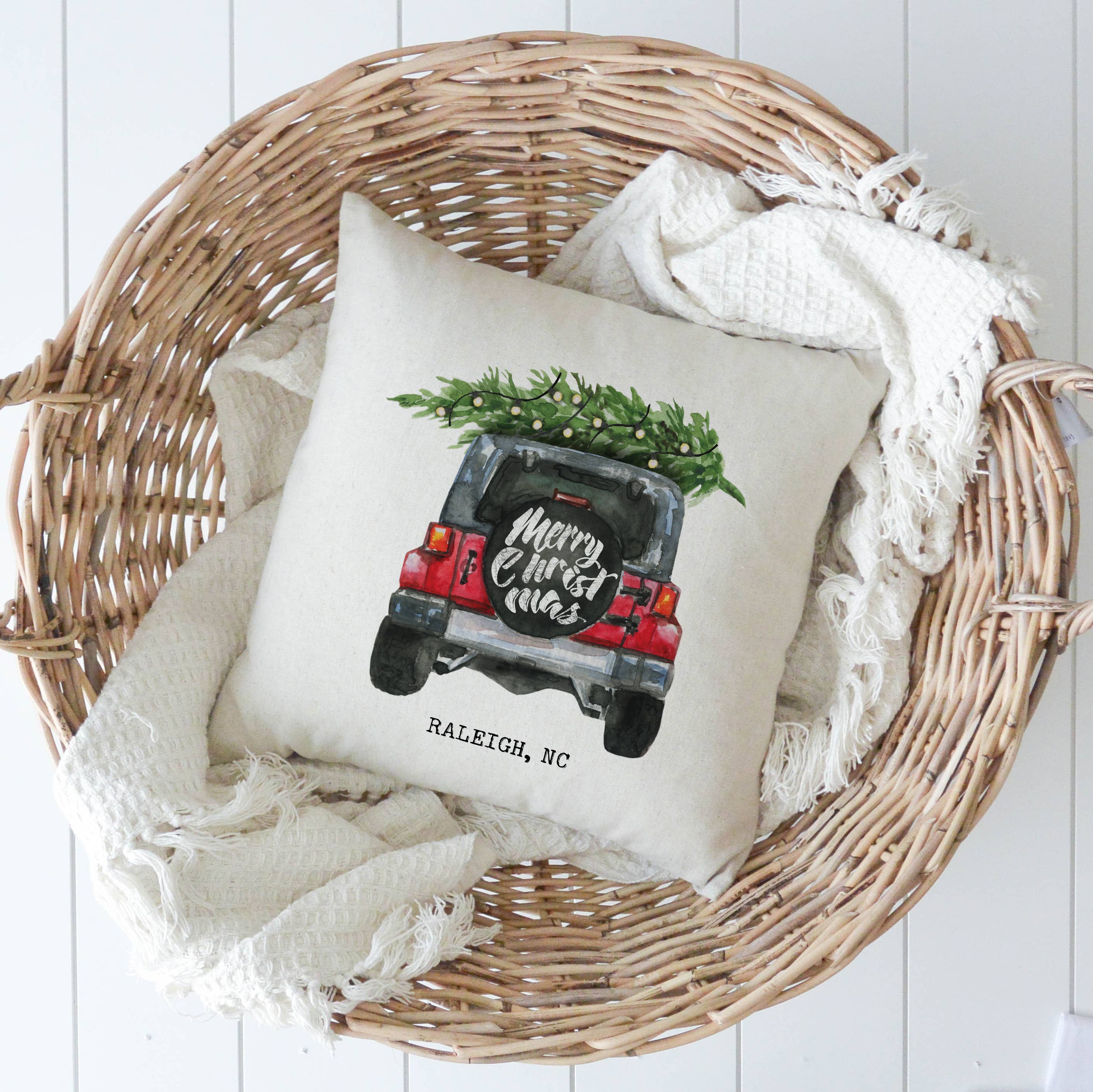 White Jeep Custom Location Pillow Cover