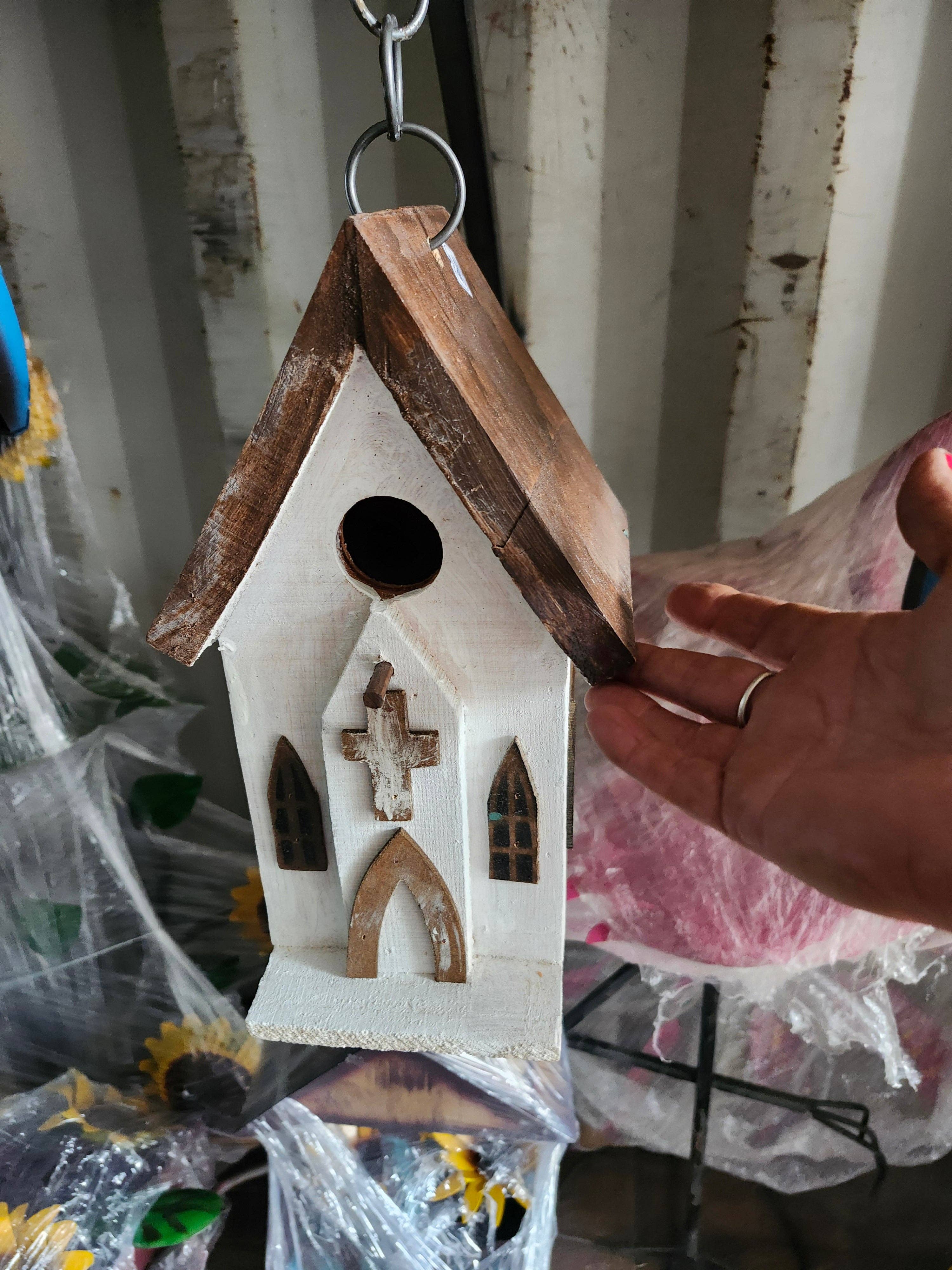 Material : Wood , Metal Colour : White , Blue , Brown Create a welcoming space for birds with this Weathered White Birdhouse. With its charming rustic accents and distressed finish, this birdhouse fits perfectly in any country or cottage-style garden. It adds both charm and practicality to your outdoor décor. Size : Length : 15.5cm Width : 12cm Height : 35cm Weight : 0.4kg Handmade Design: Crafted by hand for a unique and personal touch. Easy Cleaning: Features a door on the back for hassle-free cleaning. Durable Material: Made from high-quality wood for outdoor durability. Weathered Finish: Hand-applied weathered finish adds rustic charm. Outdoor Use: Suitable for all weather conditions, perfect for garden décor. Gift , Home , Decor , Interiors , Decoration , Quirky , Chic , Trend , Viral , Boutique , Home Decor , Bird , House , Favourite , Distressed , Birds , Birdhouse , Garden , Nature