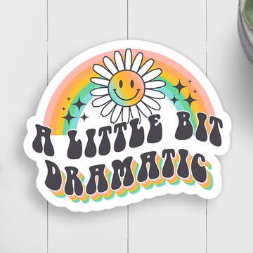 Am I the drama? Let everyone know you have a flair for the dramatic with this retro vintage-inspired bumper sticker. Perfect for your vehicle, but would also work great on a laptop or other rad surface. Durable vinyl bumper sticker. Measures 7.5" by 3.75"