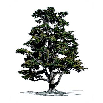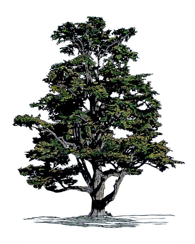 This print includes four watercolor sketches of Virginia monumental trees. Museum quality giclee print: pigment archival inks on heavy ph. neutral paper. Artwork size is approximately 8x11.5 inches.
