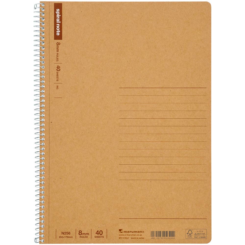"The versatile minimalist notebook is a great choice for any setting. Its smooth, high-quality paper is a joy to write on, and the vpages are perforated for easy removal. Its spiral binding lets the notebook lie flat when opened or with the cover flipped back, and sturdy kraft covers protect the paper inside."N236ES