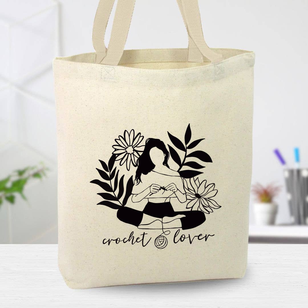 Here’s a perfect blend of style and functionality for all crochet and knitting enthusiasts. PROJECT DESCRIPTION: - Available in natural canvas and black - 100% cotton canvas - 15” x 11” - drawcord closure - Perfect size to fit a standard yarn skein along with crochet tools and knitting needles - Black vinyl imprint Enjoy convenience and creativity wherever you go! This design is also available in canvas tote bags and stickers.