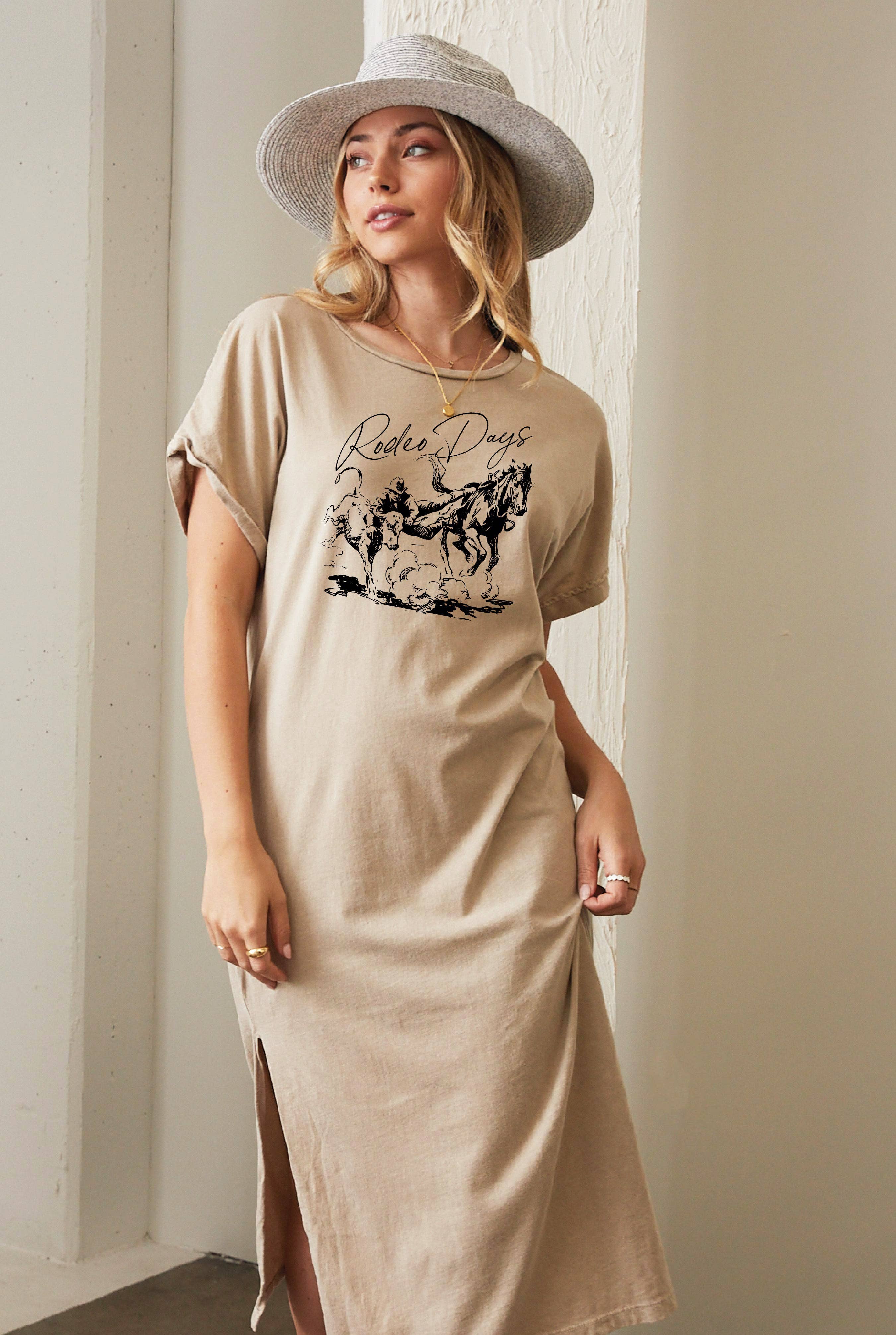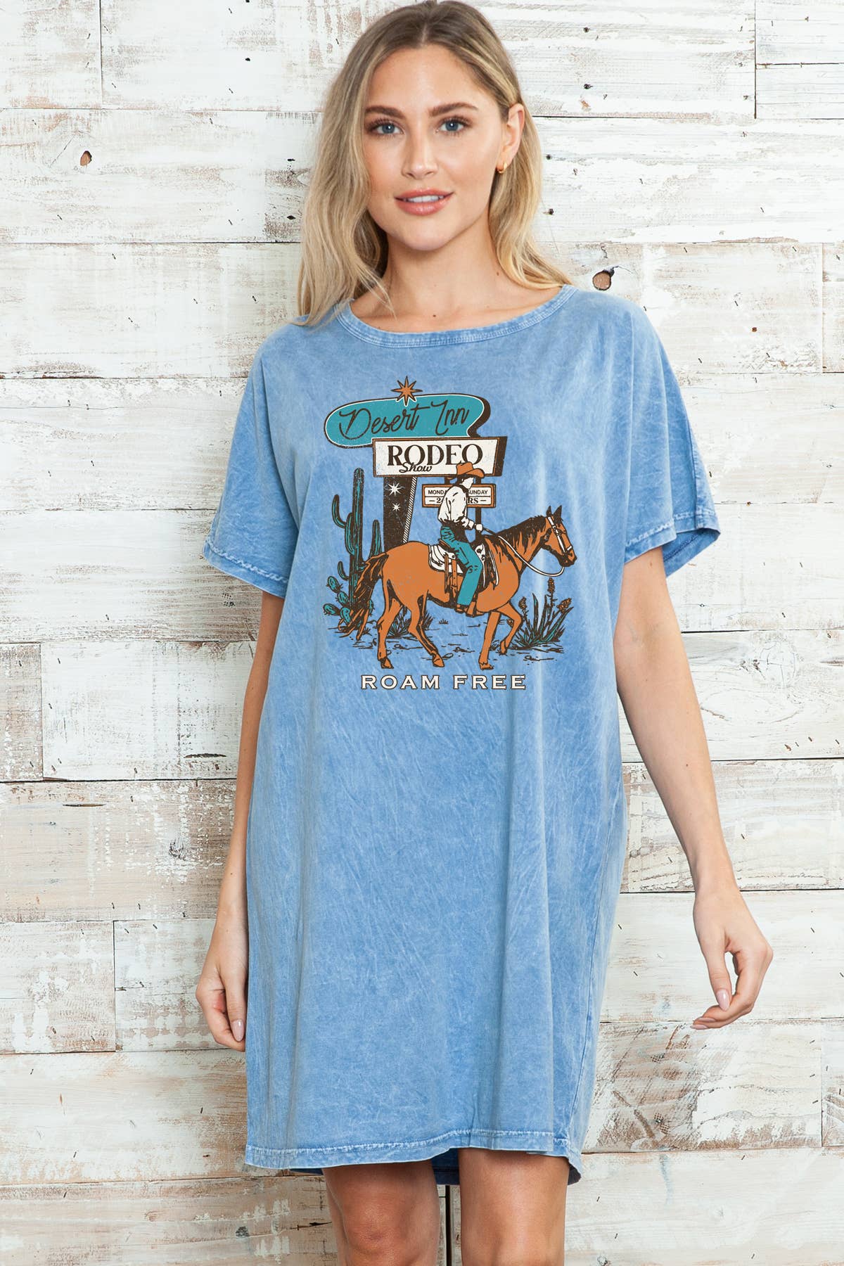 -Cowboy Adventure Graphic Relaxed Fit Short Sleeve Shirt Dress