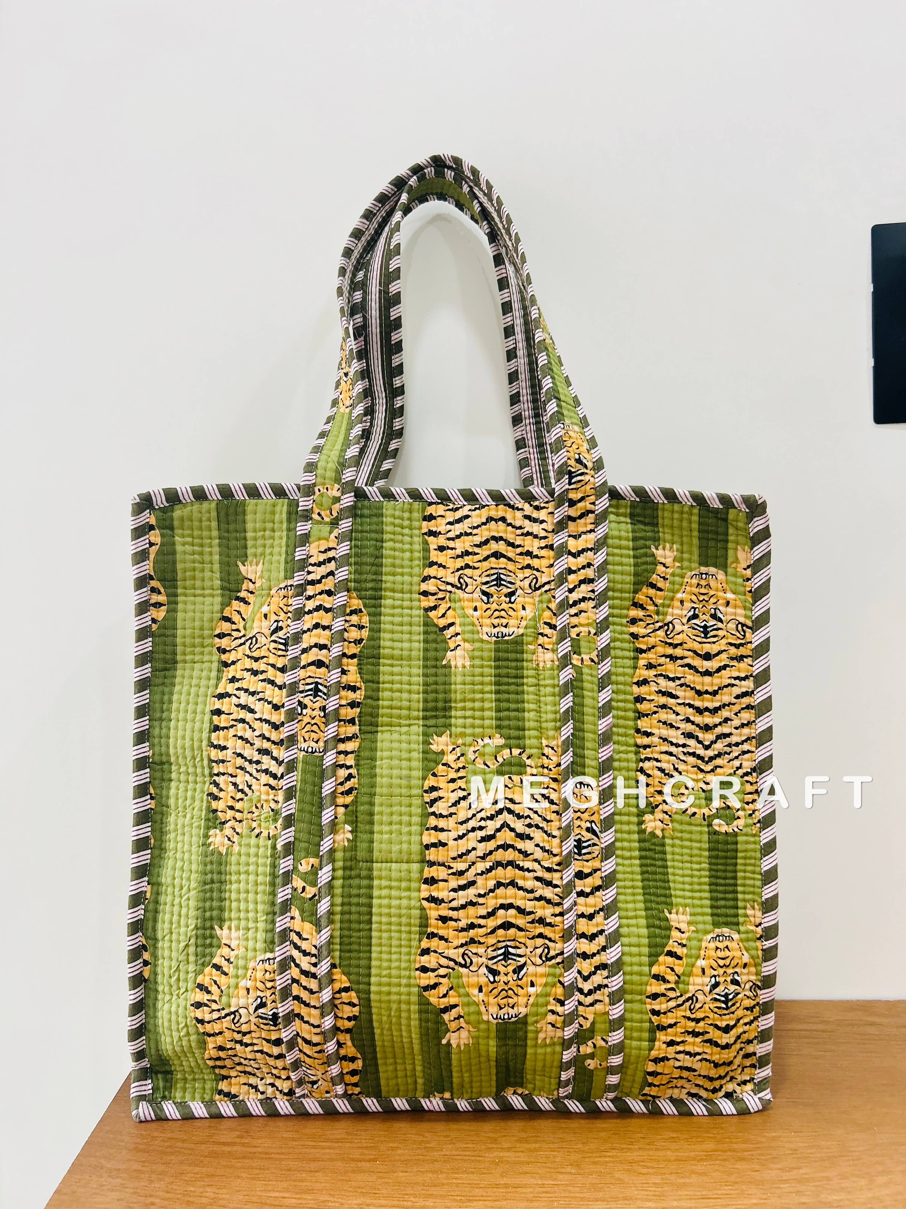SKU: CTNTOTE Made in India Bag Size: Large Color: Multi-Colored Fabric: 100% Cotton Quilted Tote Bags Product Language: English, French, Italian, and Spanish Weight: 0.96 kg (2.12 lb) Product Materials: Organic, Plastic-free, Recycled, Upcycled, and Vegan Packaging: Plastic-free, Recyclable, and Recycled Production: Ethically sourced and Fair trade